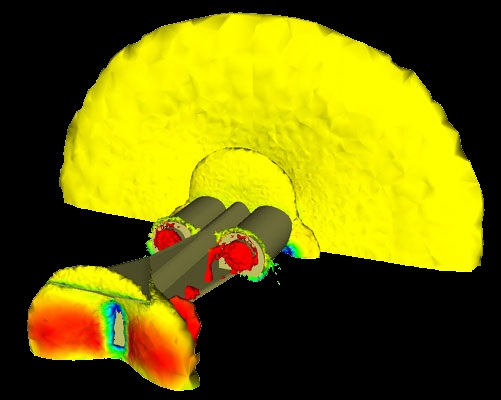 At the research stage, I mentioned the computational fluid dynamics, but we needed an experimental validation of those results. We could not use wind tunnels because, to represent the air going past a car, you need to represent the ground moving under the wheels. You can do that for slow-speed vehicles, like Formula 1 racing cars, but you can’t do that at 800mph, because you would need an 800mph conveyor belt in a wind tunnel.